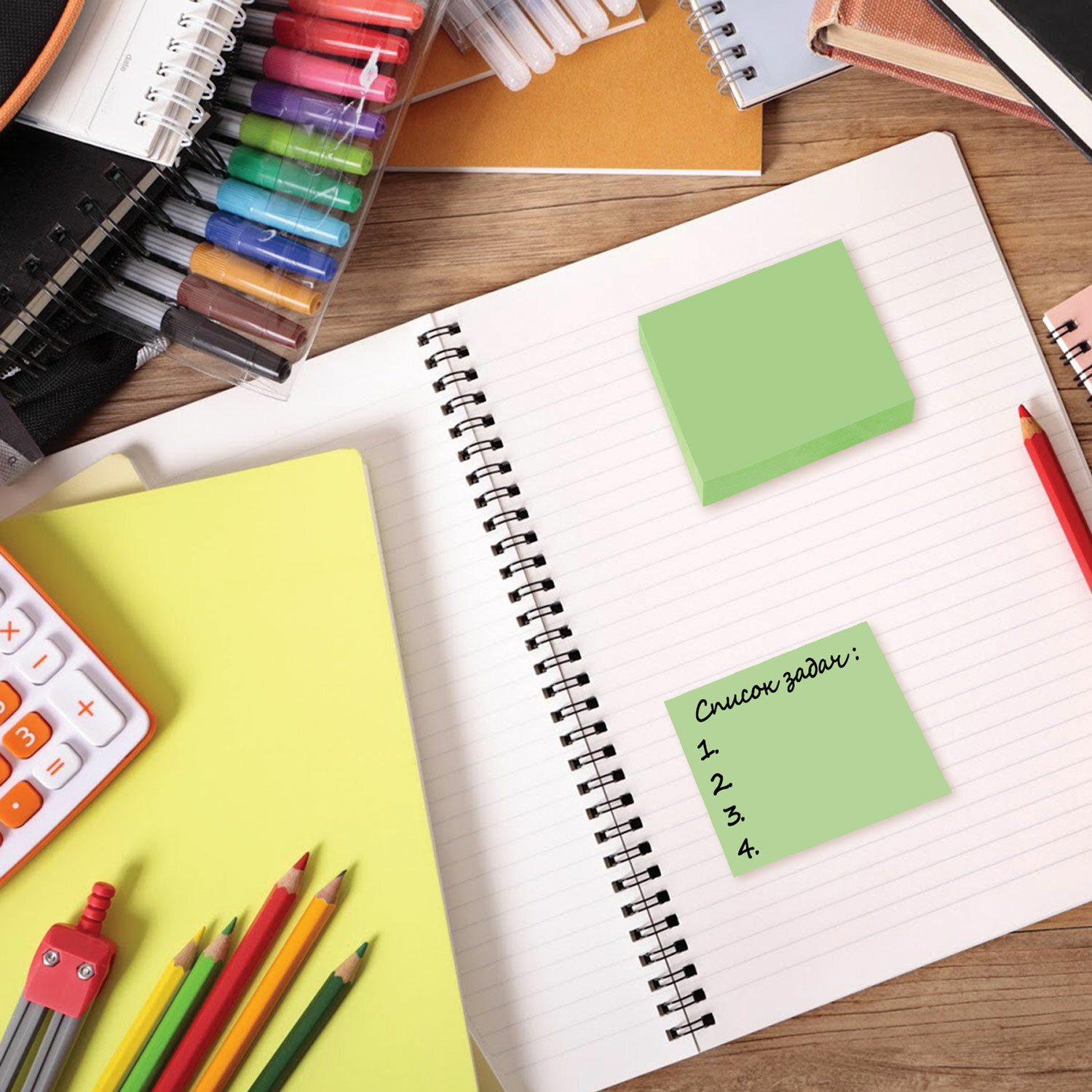 Блок самоклеящийся (стикеры) STAFF, 50х50 мм, 100 листов, зеленый, 127144