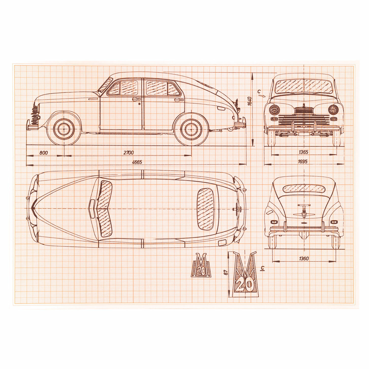 Бумага формата А4 (210х297 мм) и плотностью 65 г/м2 на скобе, 16 листов. Цвет линовки - оранжевый. Отличается четкими линиями и точной миллиметровой разметкой.