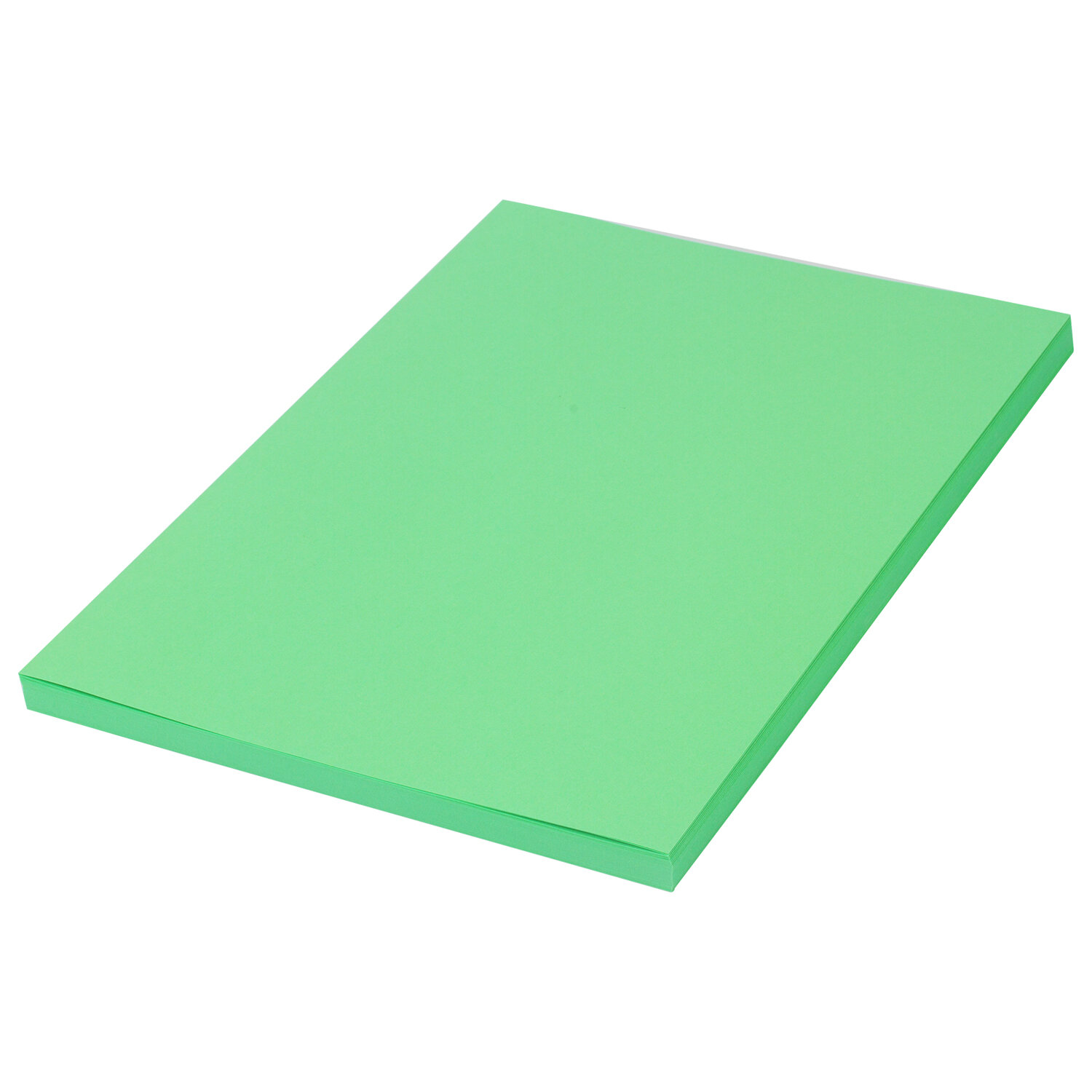 Упакована в пачки по 100 листов формата А4. В упаковке бумага интенсивного тона зеленого цвета. Листы бумаги плотностью 80 г/м2 подходят для офисной техники.