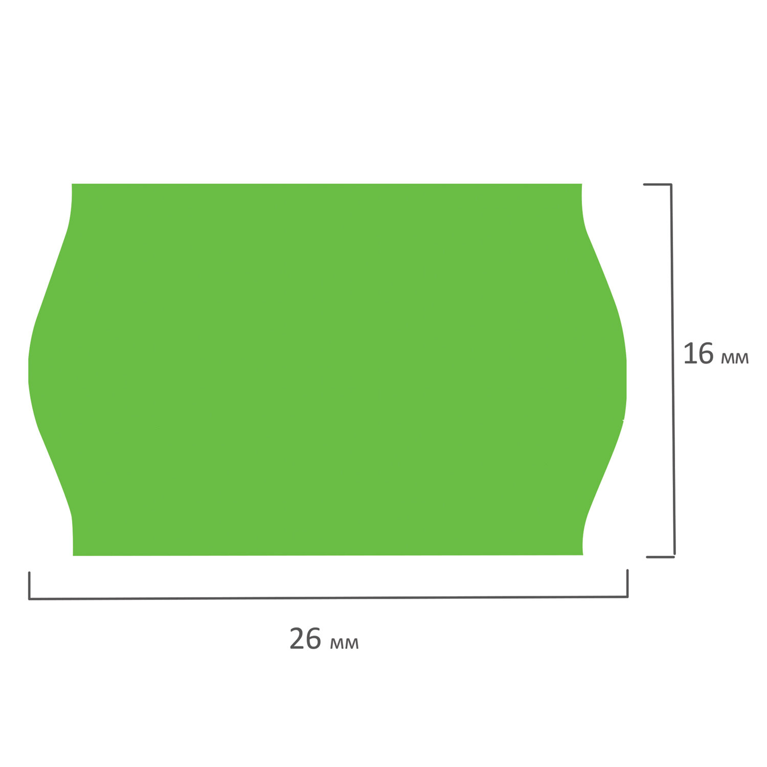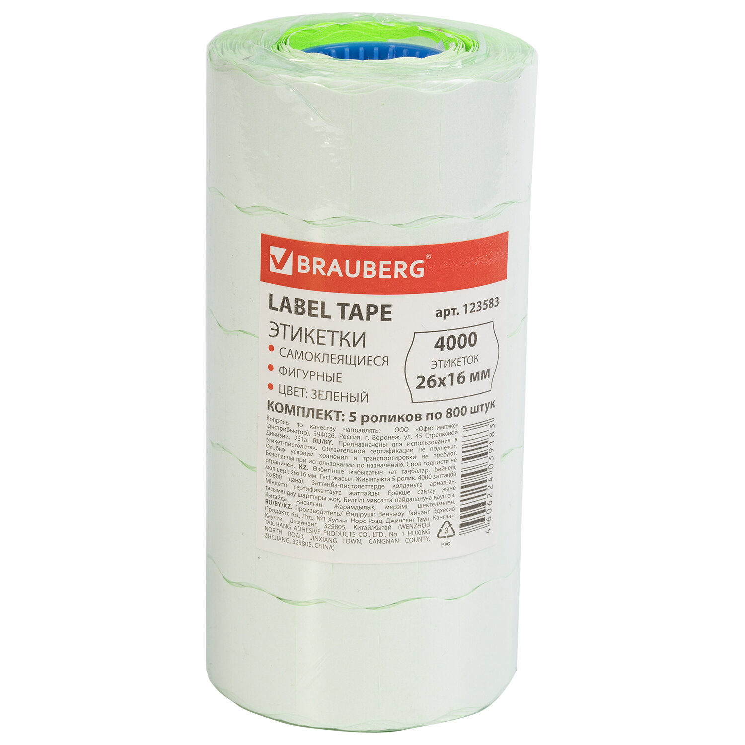 Цвет - зеленый, форма - "волна". Один рулон содержит 800 этикеток размером 26x16 мм. 5 рулонов в комплекте. Поставляются в термоусадочной пленке.
