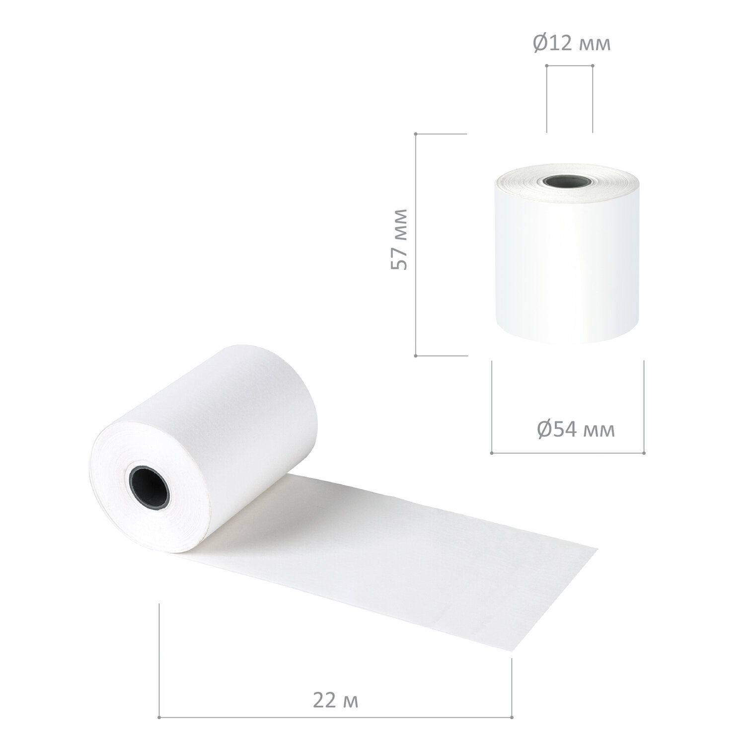 Чековая лента ОФСЕТ 57 мм (диаметр 54 мм, длина 22 м, втулка 12 мм) НЕ ТЕРМОБУМАГА, белизна 96%, КОМ