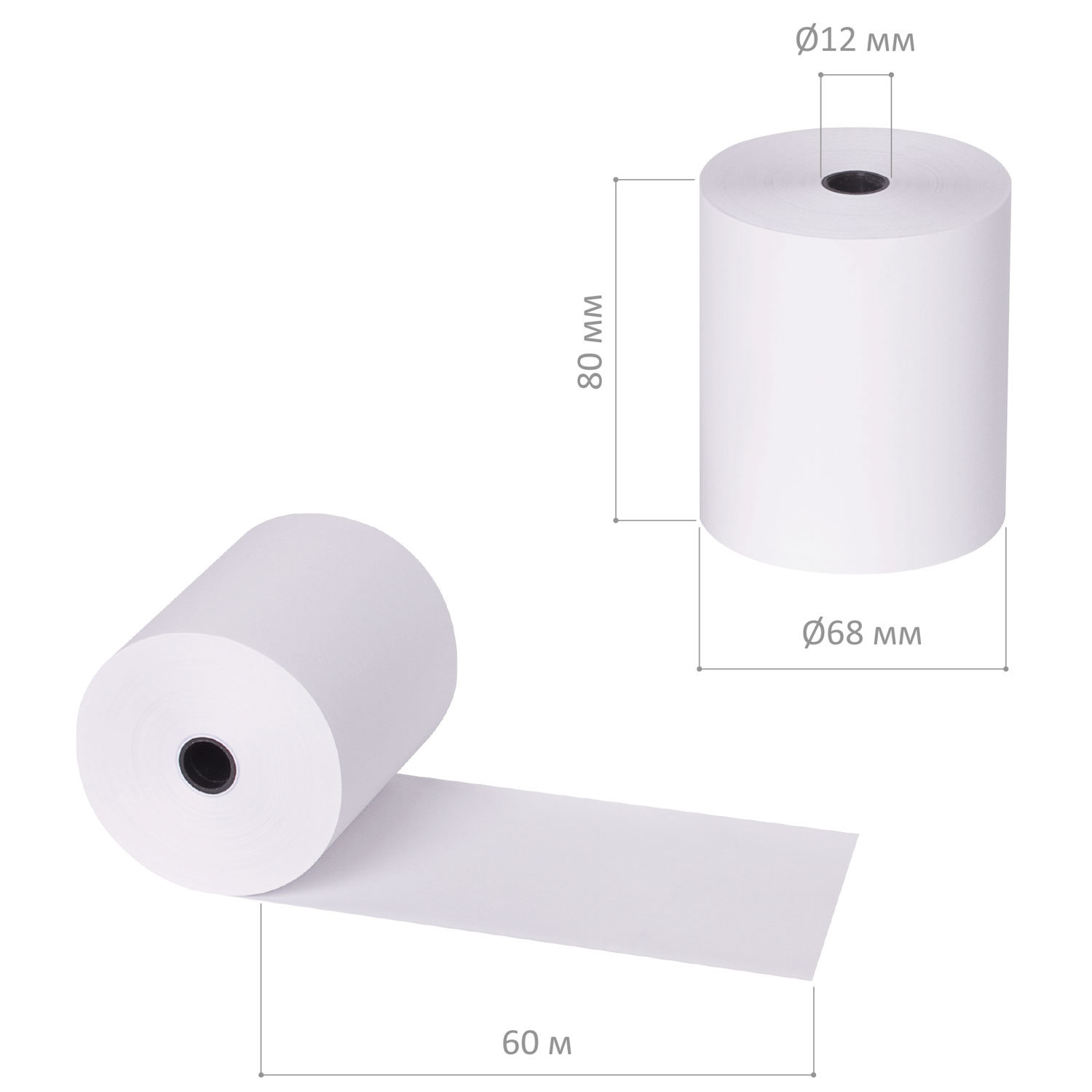 Чековая лента ТЕРМОБУМАГА 80 мм (диаметр 68 мм, длина 60 м, втулка 12 мм) КОМПЛЕКТ 6 шт., BRAUBERG,