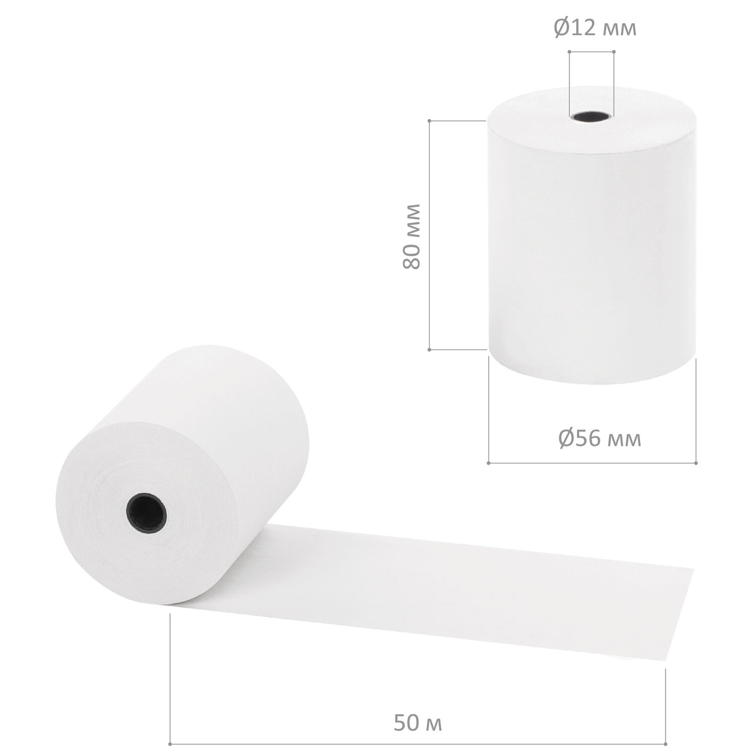 Чековая лента ТЕРМОБУМАГА 80 мм (диаметр 56 мм, длина 50 м, втулка 12 мм), КОМПЛЕКТ 6 шт., 44 г/м2,