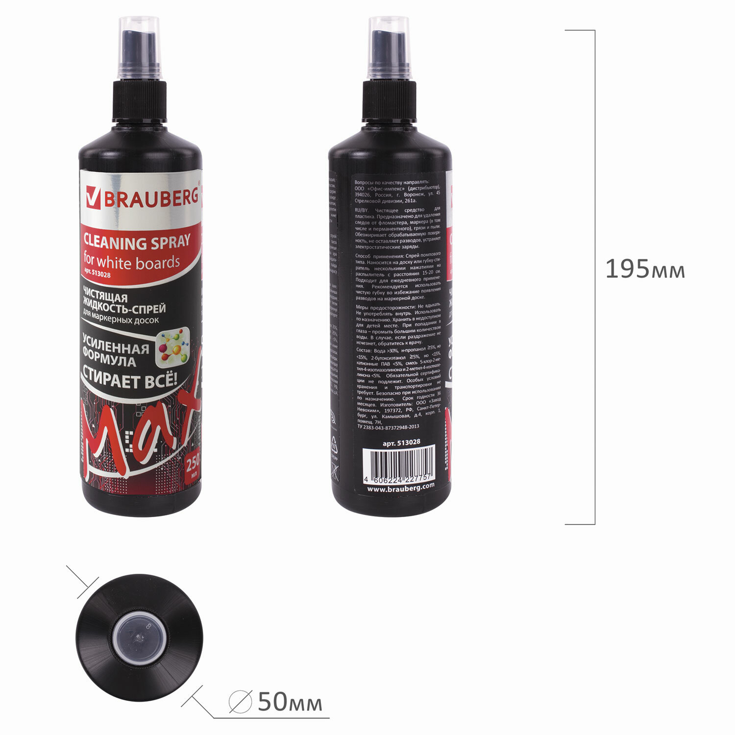 Чистящая жидкость-спрей для маркерных досок УСИЛЕННАЯ ФОРМУЛА, BRAUBERG TURBO MAX, 250 мл, 513028