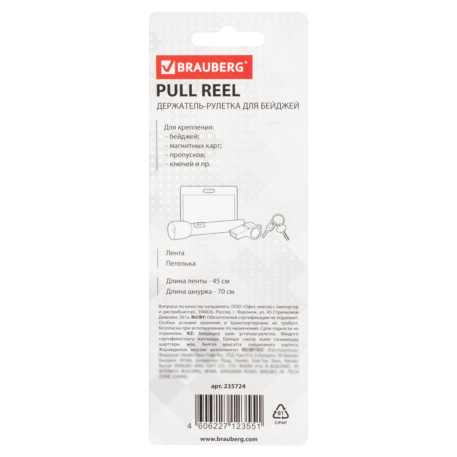 - Длина нити в держателе-рулетке: 70 см
