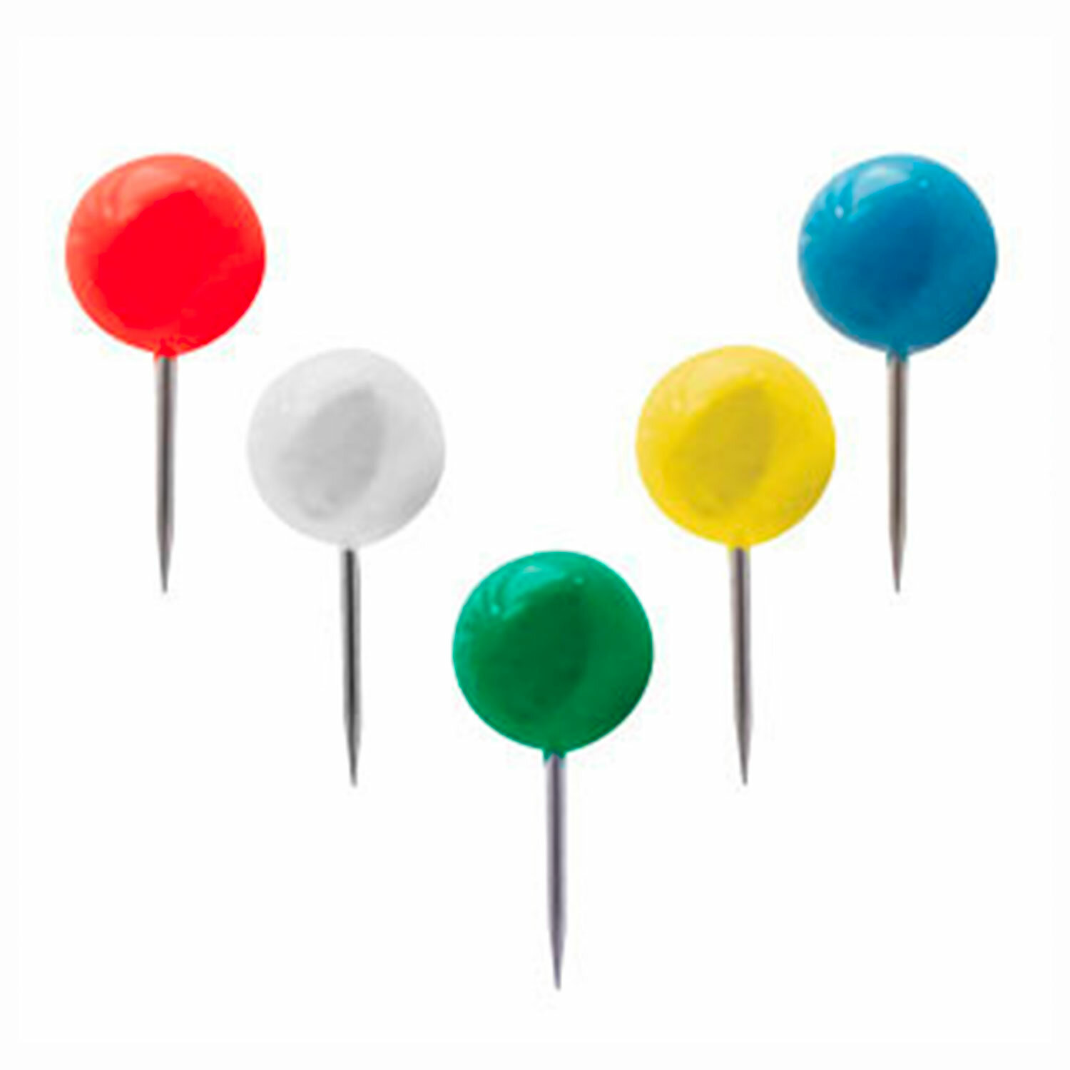 Кнопки с цветной круглой пластиковой шляпкой диаметром 8 мм и стальным острием длиной 10 мм. 50 штук в картонной коробке.