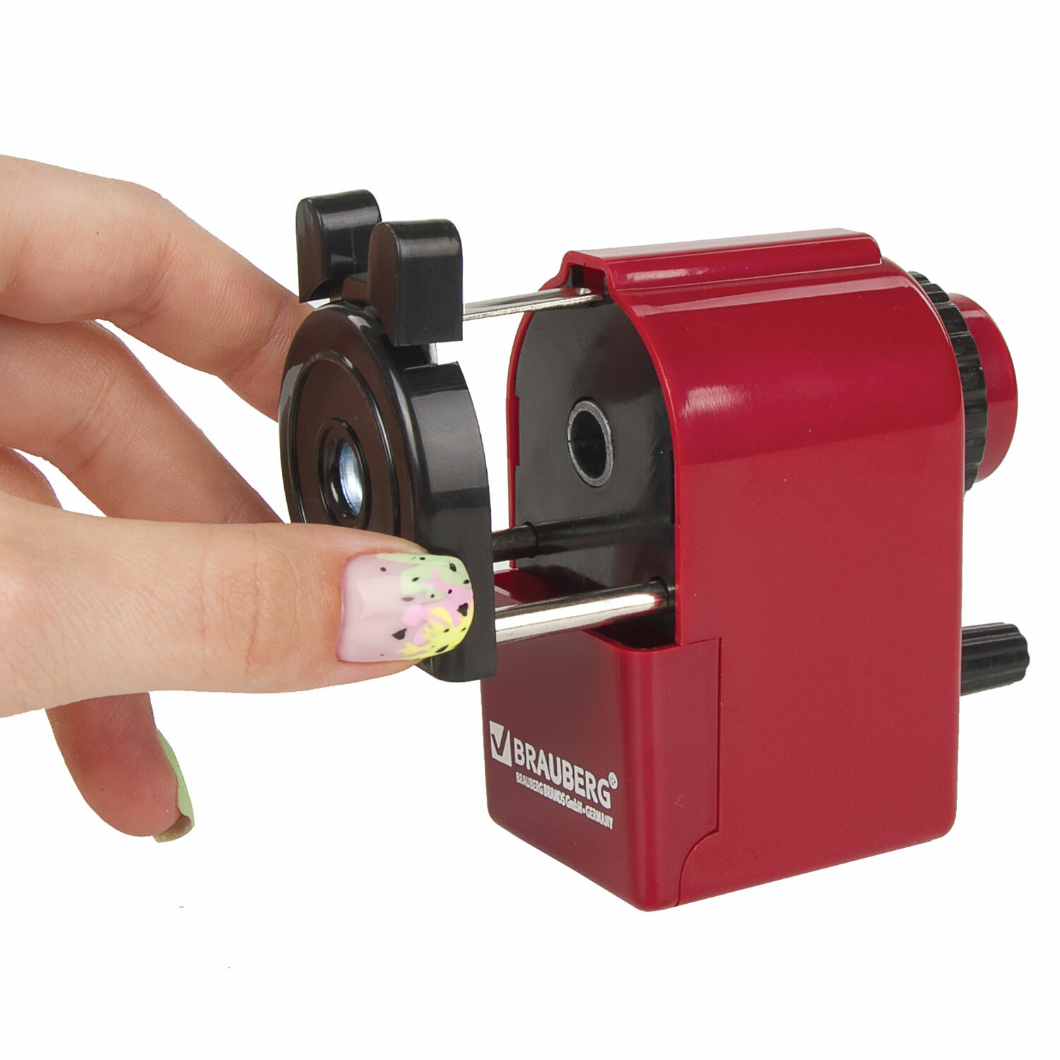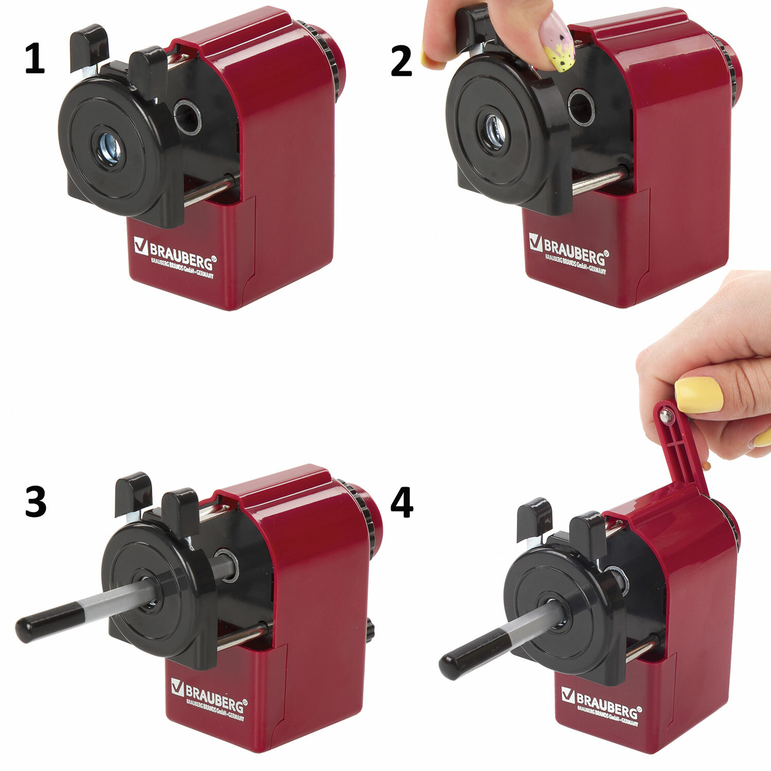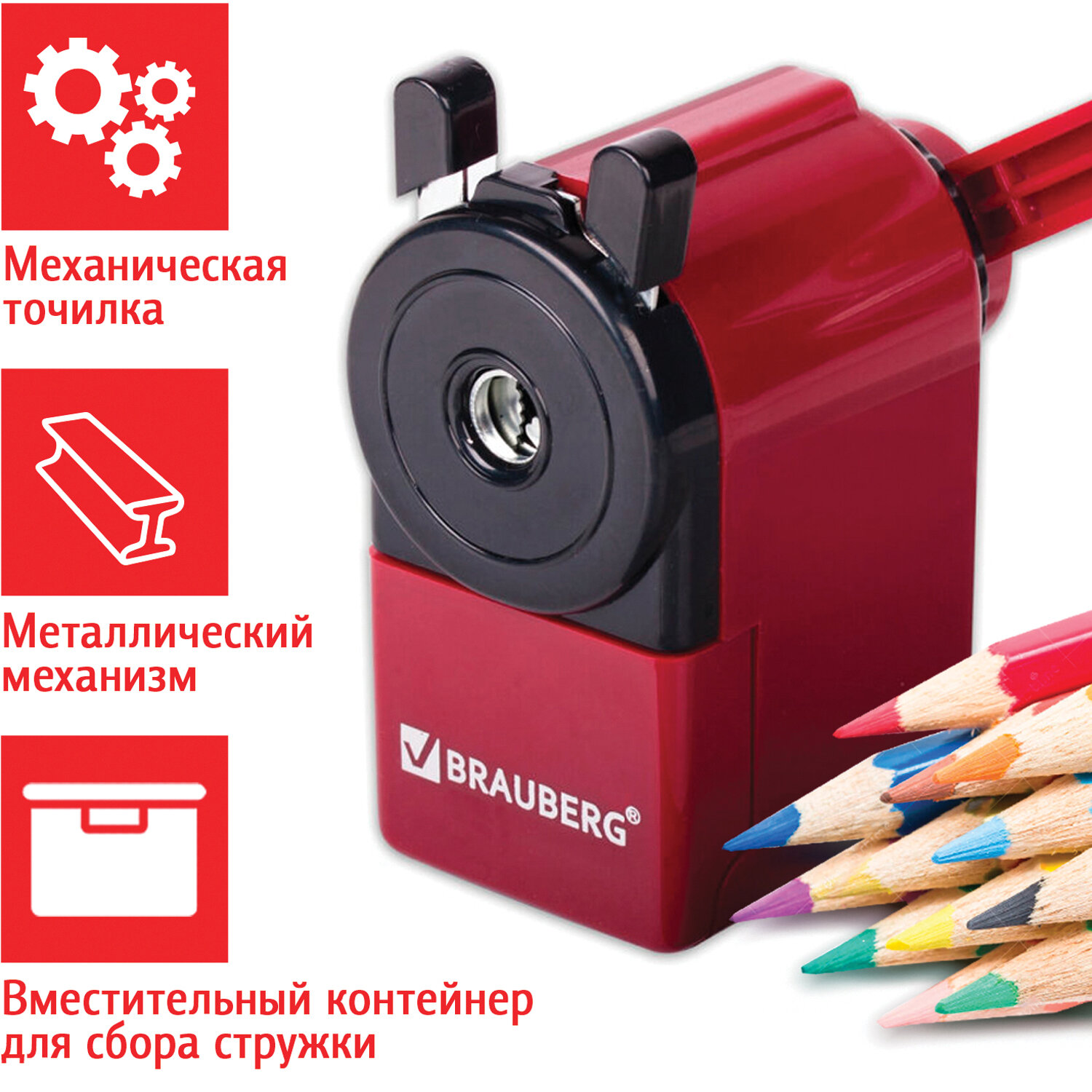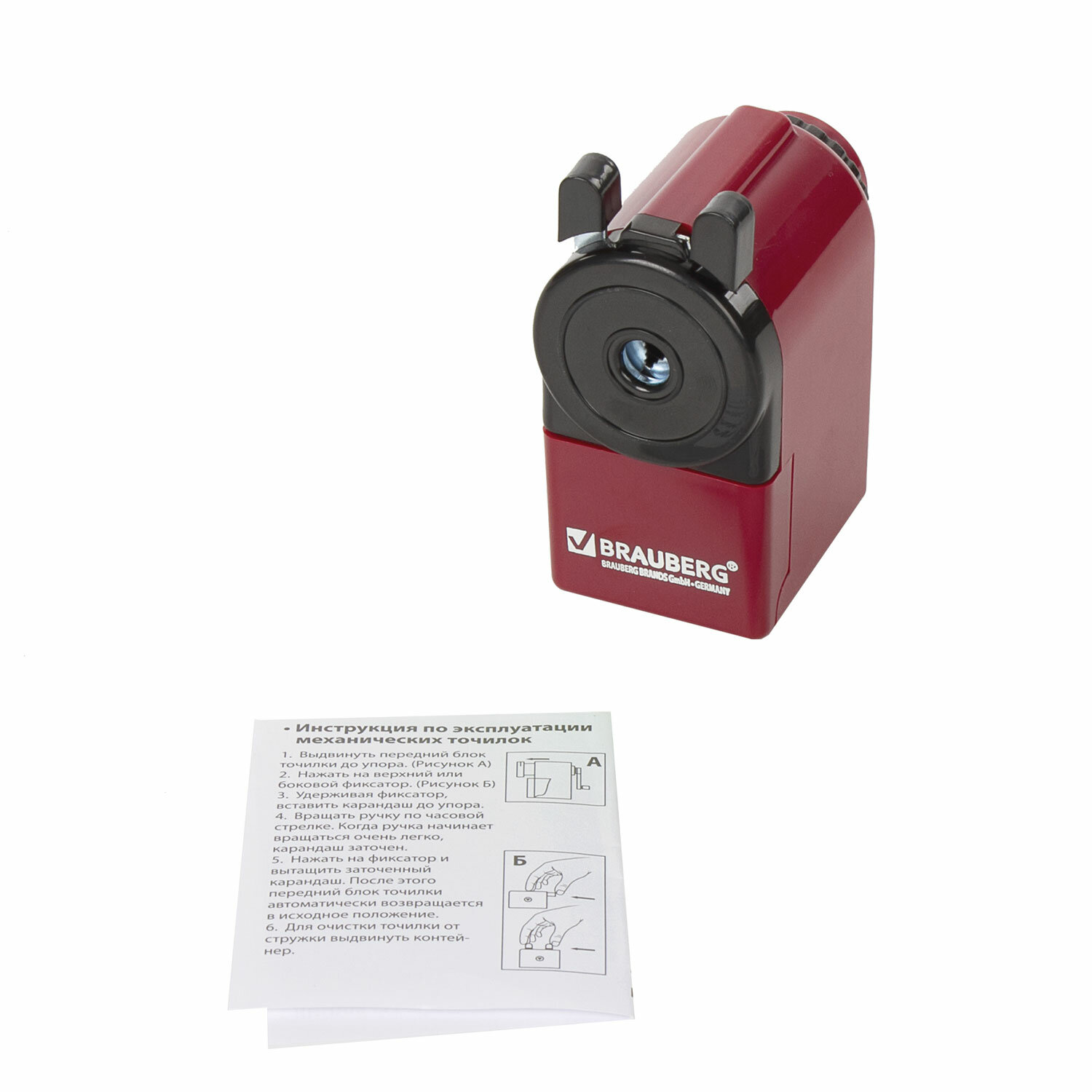 Точилка механическая BRAUBERG "JET", металлический механизм, черный/бордовый, 222517
