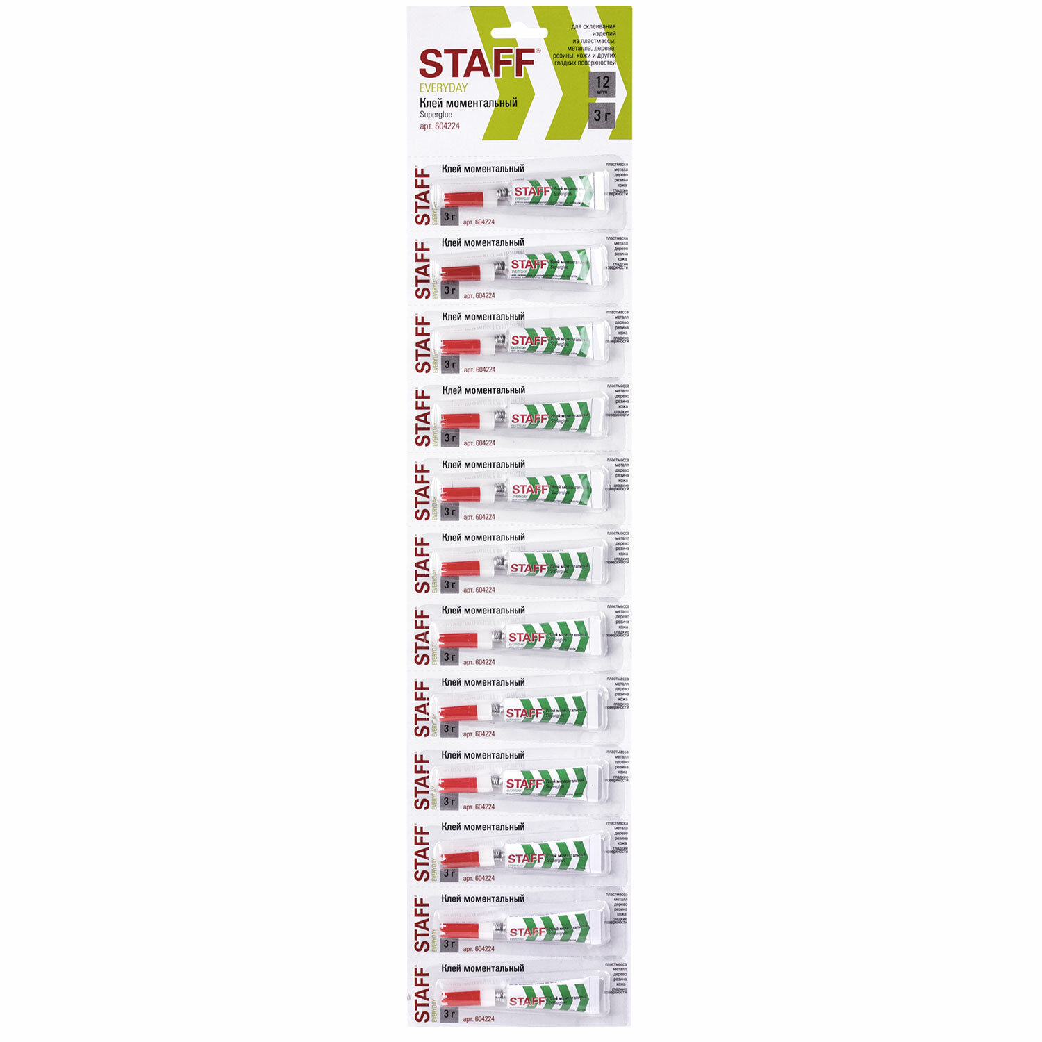 Клей моментальный (суперклей) STAFF "EVERYDAY" НОВАЯ УПАКОВКА, 3 г, на ленте, 604224