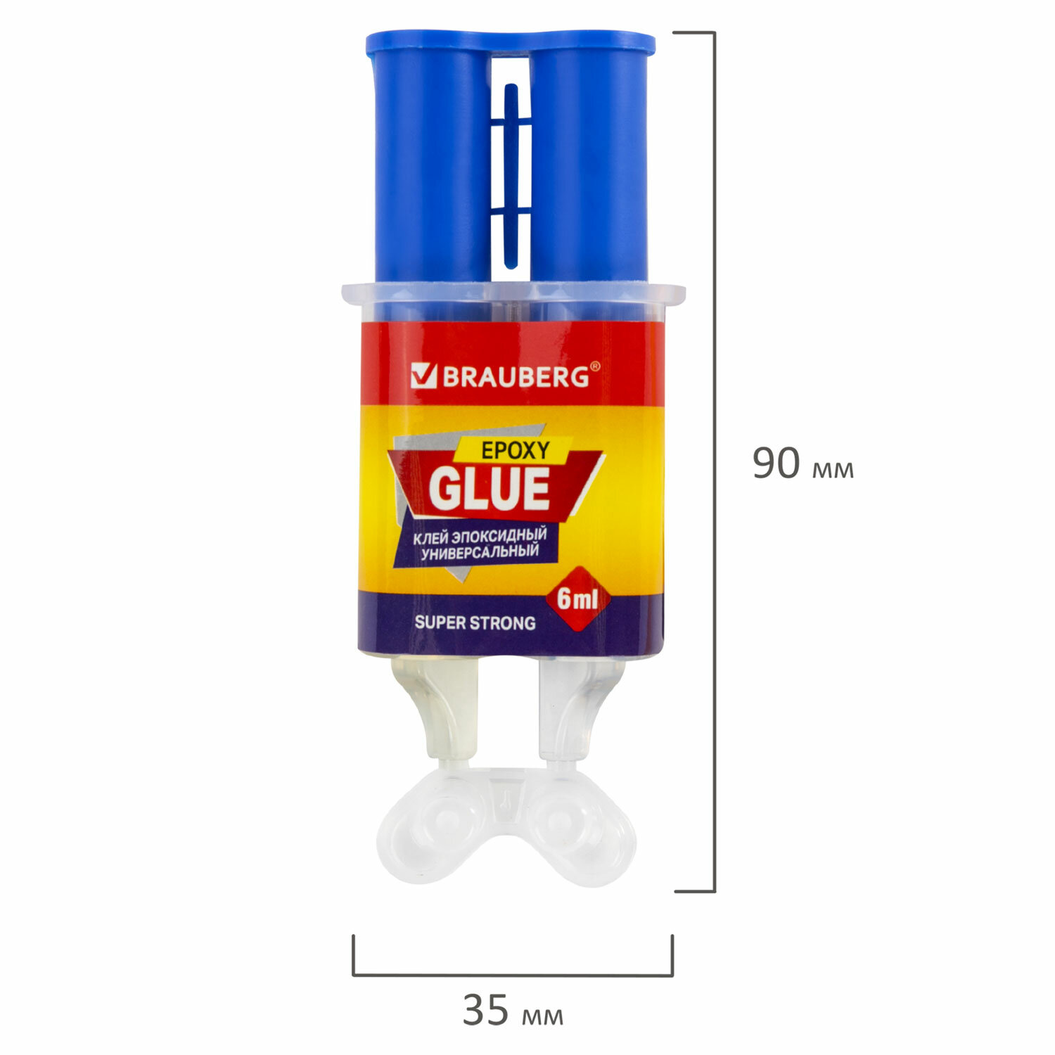 Клей универсальный эпоксидный шприц (смола+отвердитель) 3+3 мл суперпрочный, BRAUBERG EXTRA, 608104