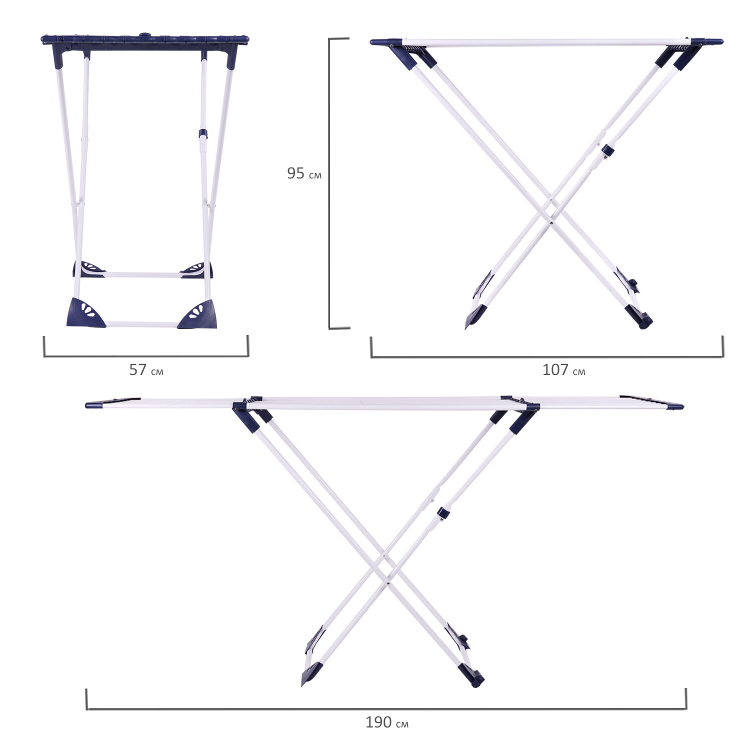 Компактная раздвижная и складная напольная сушилка для белья - незаменимая вещь в каждом доме. Имеет удобный и надежный механизм раскладывания. Оснащена двумя раздвижными створками, что позволяет получить 3 зоны для сушки вместо одной. Идеально подходит для дома и квартиры. Сушилка для белья изготовлена из высококачественных прочных материалов, что обеспечивает ее устойчивость и мобильность. Все углы сушилки плавно и аккуратно скруглены. Ножки оснащены пластиковыми накладками для защиты пола от царапин и предотвращения скольжения сушилки по поверхности, а также колесиками для удобства перемещения. Размер - 57х107х95 см в сложенном виде и 57х190х95 см с раздвинутыми с двух сторон створками. Выдерживает нагрузку до 40 кг. Устойчивая, вместительная и компактная в хранении, при необходимости быстро и легко складывается и убирается. Заменяет до 20 метров бельевой веревки!