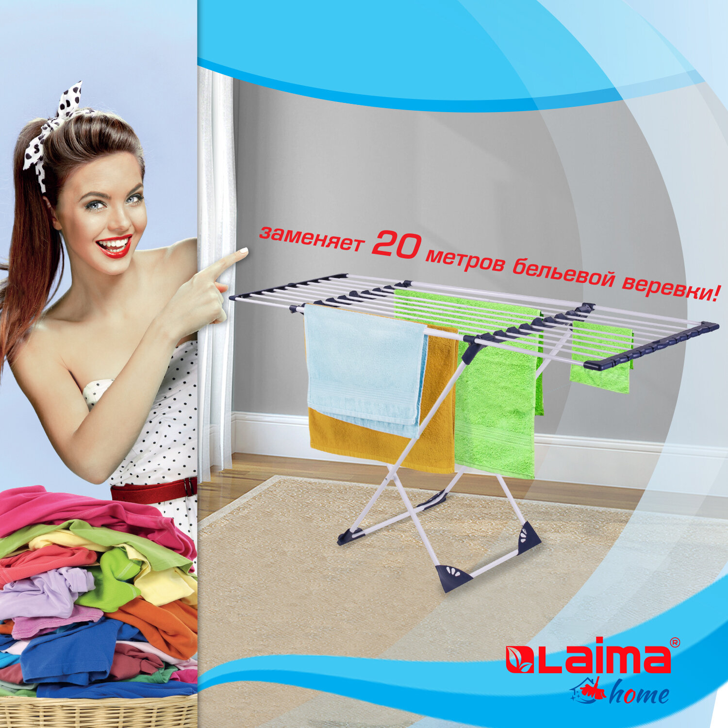 Сушилка напольная для белья раскладная, 3 сушильные зоны, 20 метров, LAIMA HOME, 607808