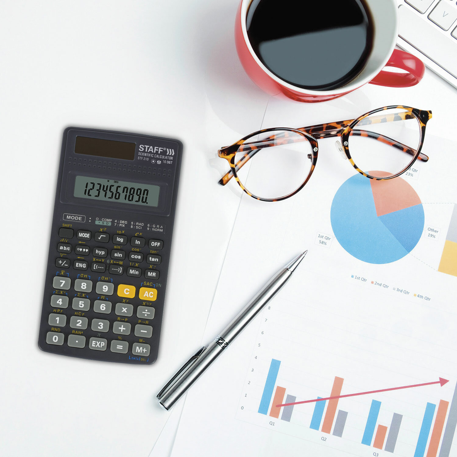 139 встроенных научных и статистических функций позволяют вычислять степени и квадратные корни, логарифмы и антилогарифмы, прямые и обратные тригонометрические функции. Устройство также осуществляет статистические расчёты, тригонометрические расчёты в градусах, радианах и градах. Вычислительная мощность калькулятора позволяет обрабатывать до восемнадцати уровней выражений в скобках. Встроенный аккумулятор и солнечная батарея, образующие единую схему питания калькулятора, позволяют устройству работать при любом освещении. Мягкие резиновые кнопки нажимаются легко и тихо. Практичный пластиковый футляр защищает калькулятор от грязи и случайного включения.
