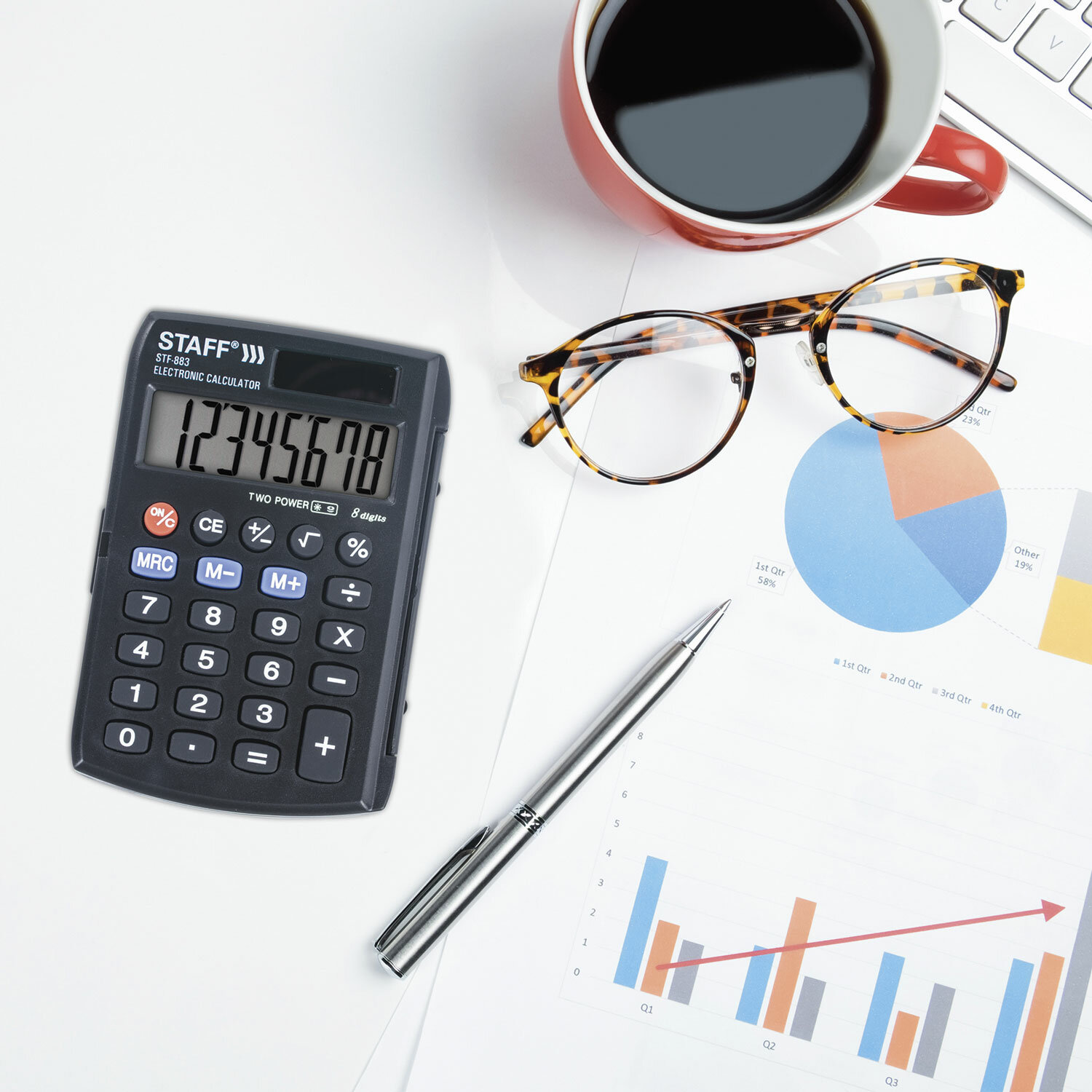 Калькулятор карманный STAFF STF-883 (95х62 мм), 8 разрядов, двойное питание, 250196