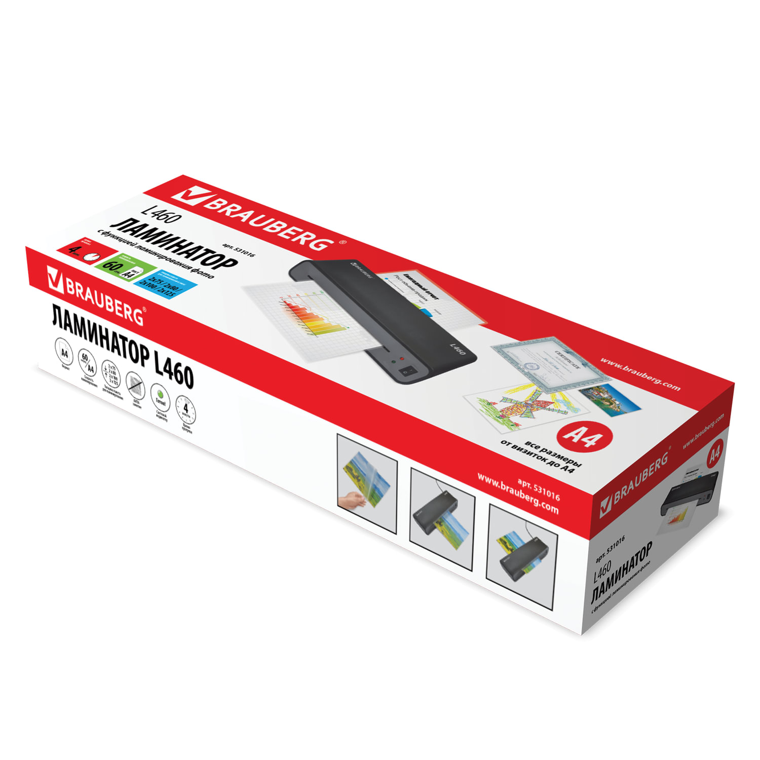 Ламинатор BRAUBERG L460-B ЧЕРНЫЙ, формат A4, толщина пленки 75-125 мкм, скорость 30 см/мин, 531016