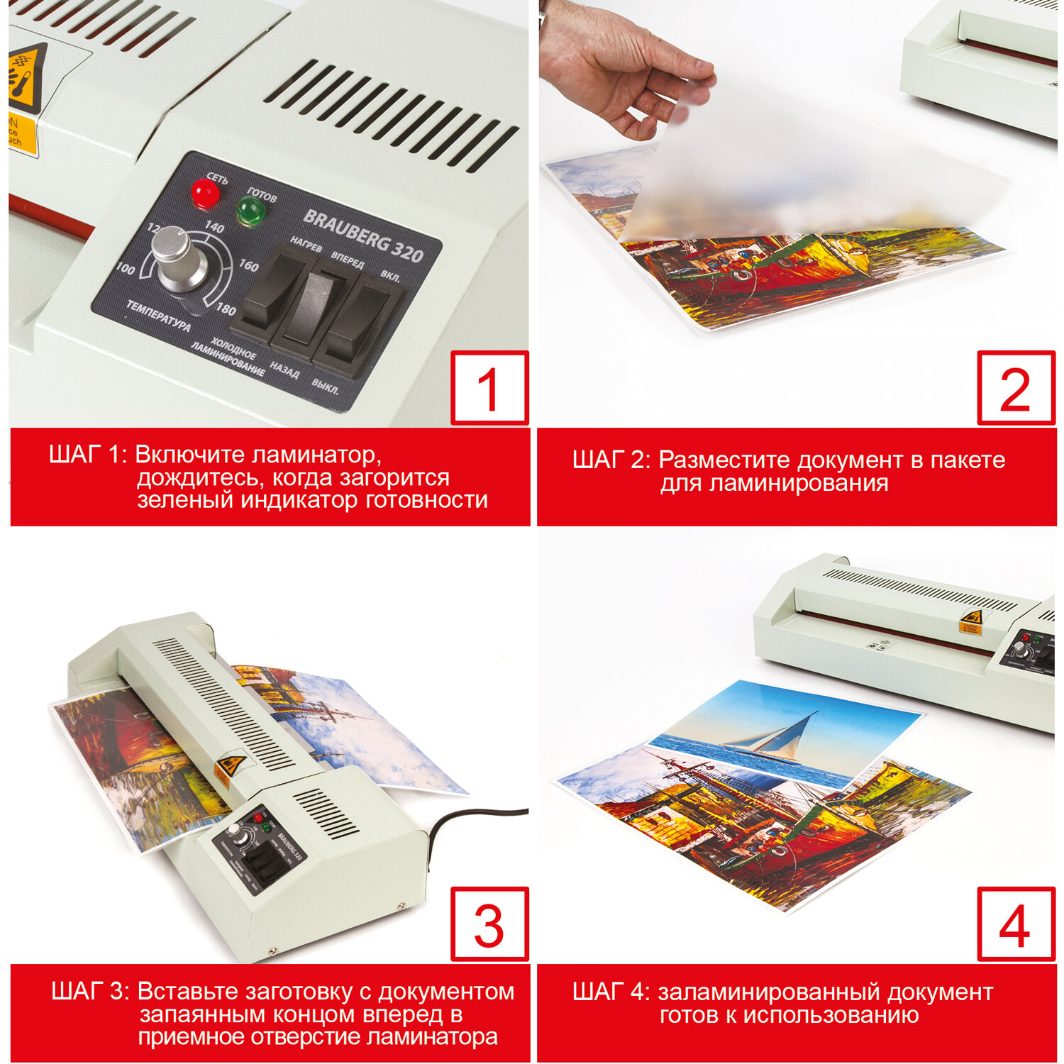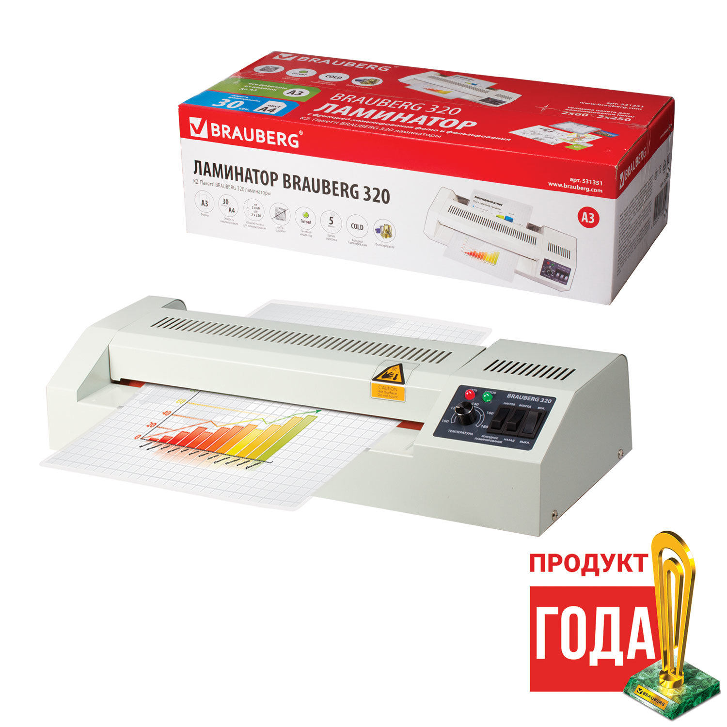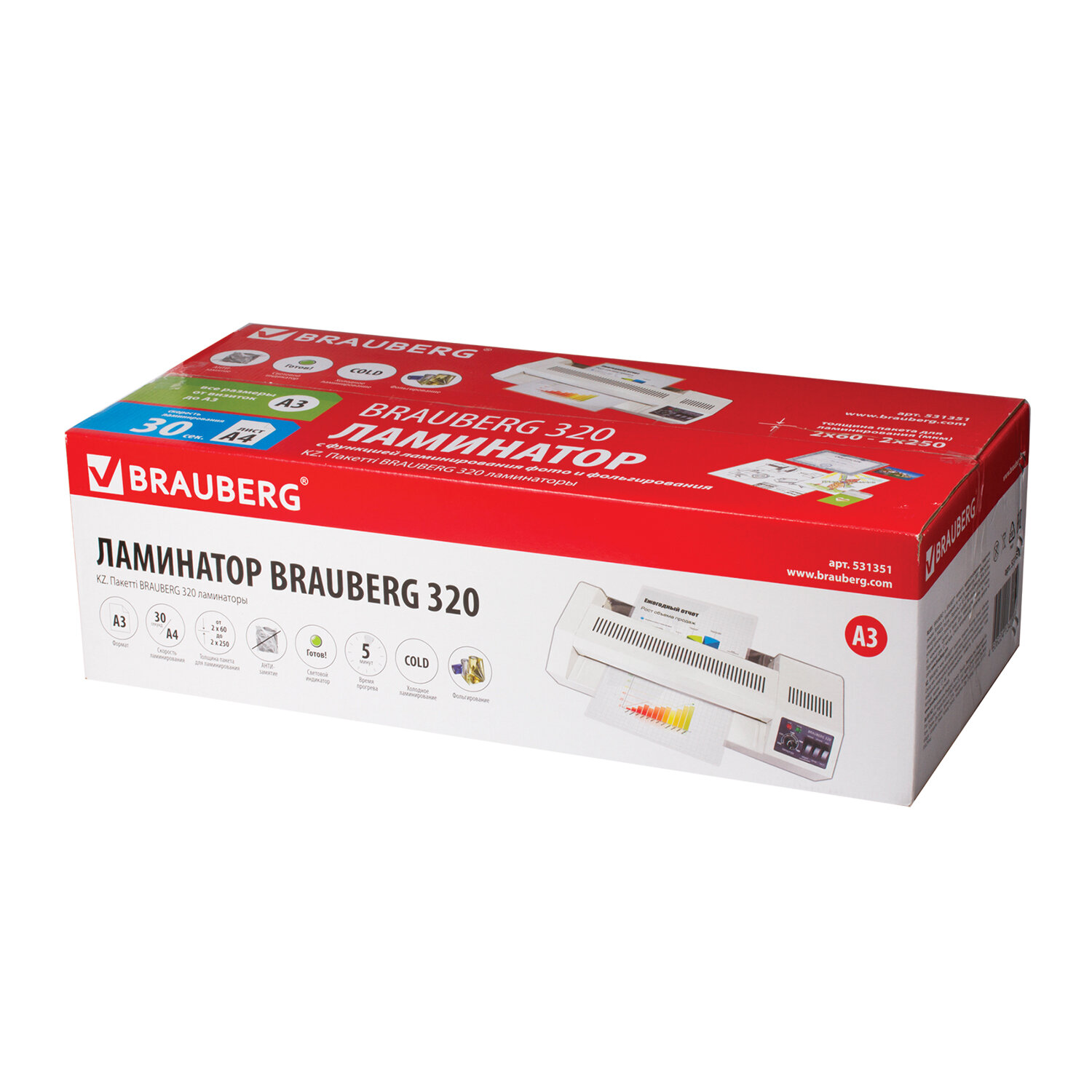 Ламинатор BRAUBERG FGK-320, формат А3, толщина пленки 1 сторона 60-250 мкм, скорость 51 см/мин, 5313