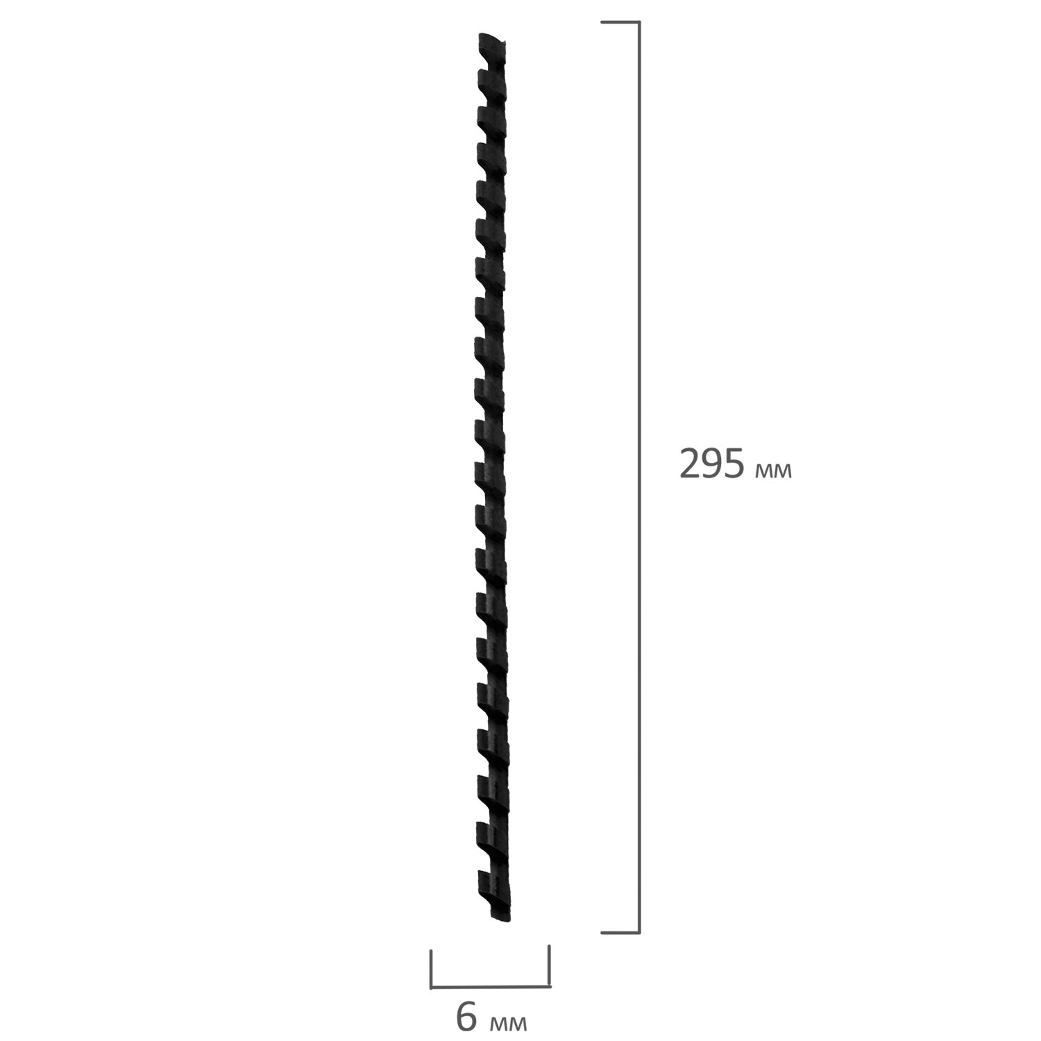 Рекомендуется использовать для переплета документов объемом от 10 до 20 листов. Изготовлена из высококачественного пластика чёрного цвета. Состоит из 21 кольца диаметром 6 мм. В упаковке 100 штук.