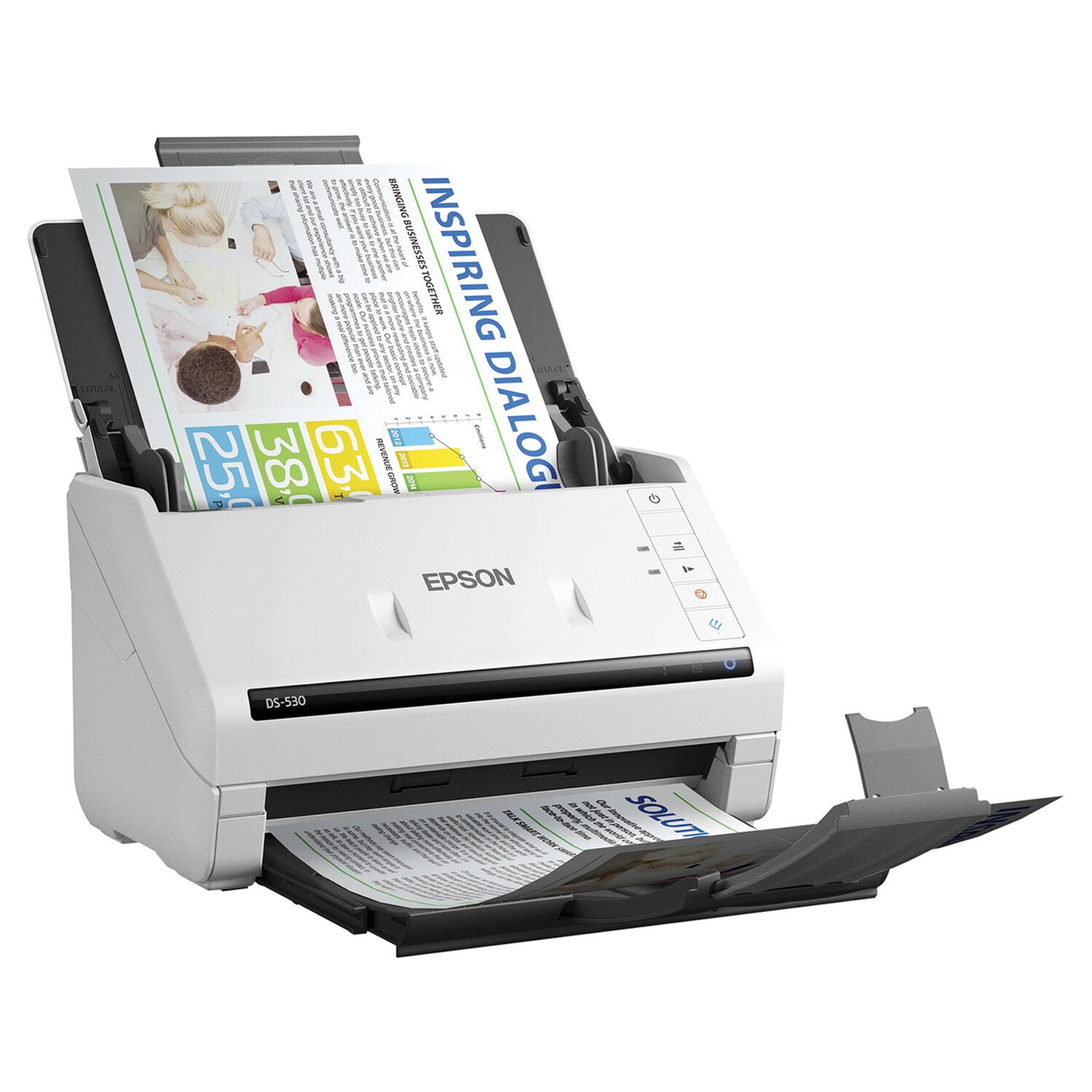 EPSON WorkForce DS-530II – потоковый сканер формата А4 с автоподатчиком документов. Данный сканер поддерживает работу с длинными документами до 6096 мм, что делает DS-530 одним из уникальных сканеров на рынке. Скорость сканирования составляет 35 стр./мин в одностороннем режиме и 70 изобр./мин при двустороннем сканировании.