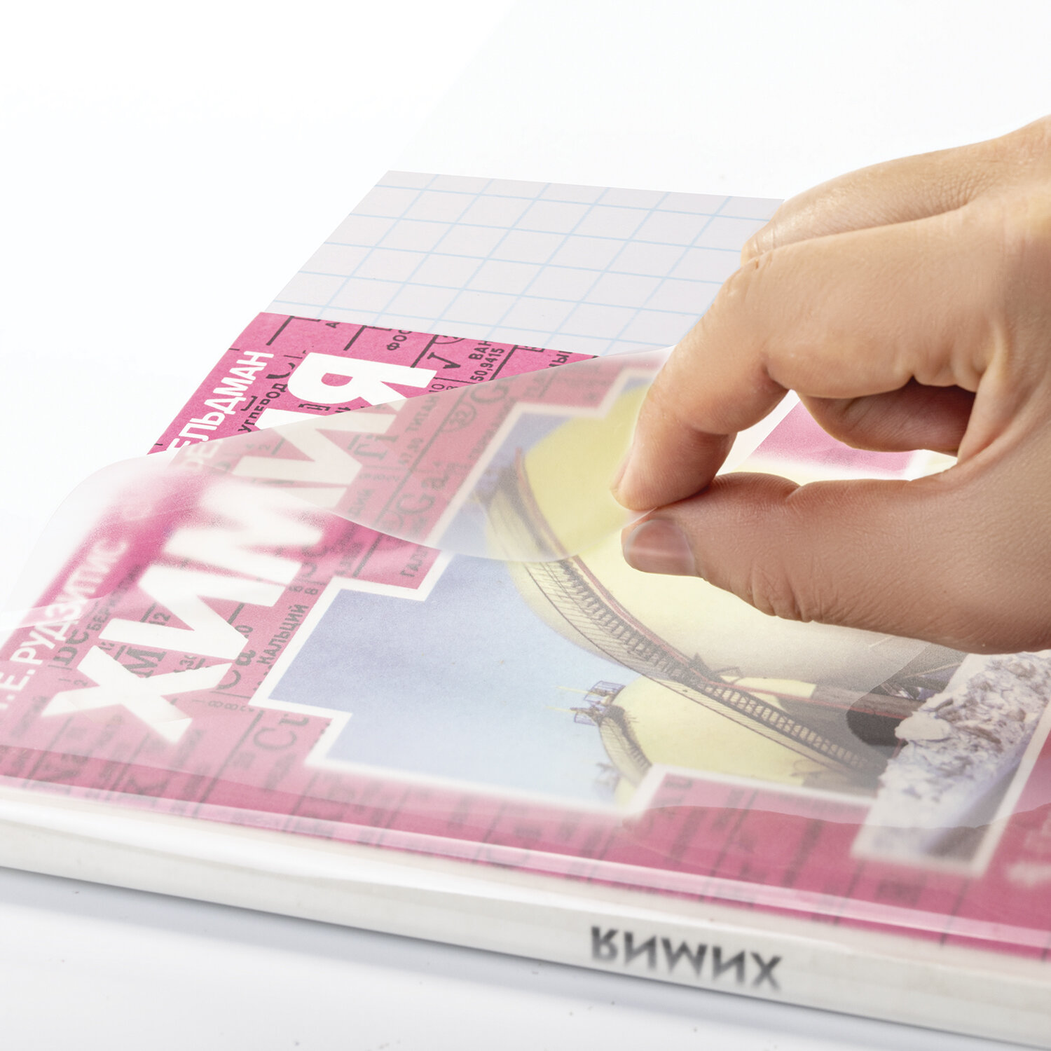 Изготовлена из прозрачного полипропилена толщиной 100 мкм. Подходит для любых форматов. Имеет глянцевый блеск. 10 листов в комплекте. Размер листа - 50х36 см. Инструкция по применению:1. Примерить книгу и наметить место корешка.2. Обозначить прорези для корешка. 3. Сделать надрезы для корешка.4. Отклеить защитный слой от места под корешок.5. Приклеить корешок книги к пленке.6. Отклеить защитный слой от места под обложку.7. Приклеить обложку книги к пленке.8. Отрезать лишние части самоклеящейся пленки.9. Загнуть и приклеить пропуски.