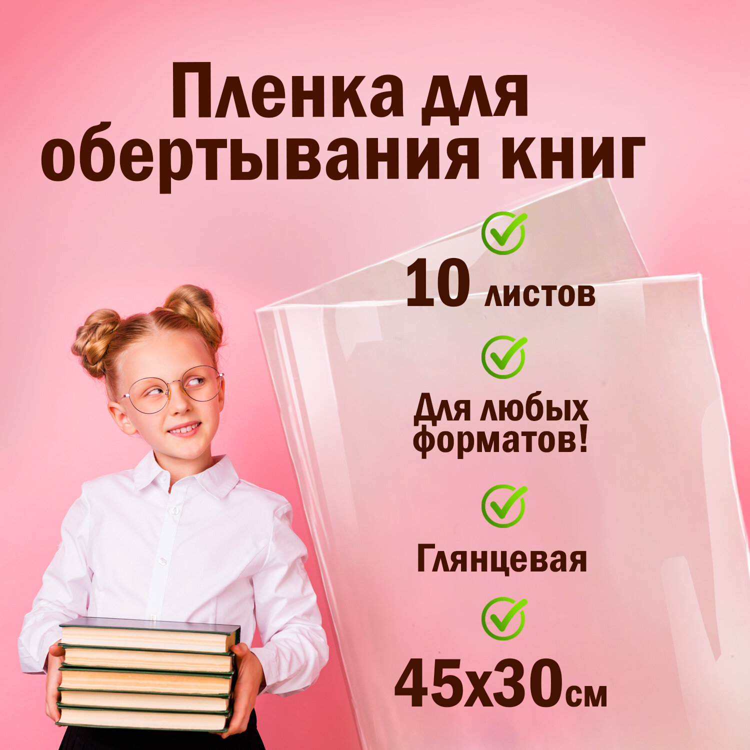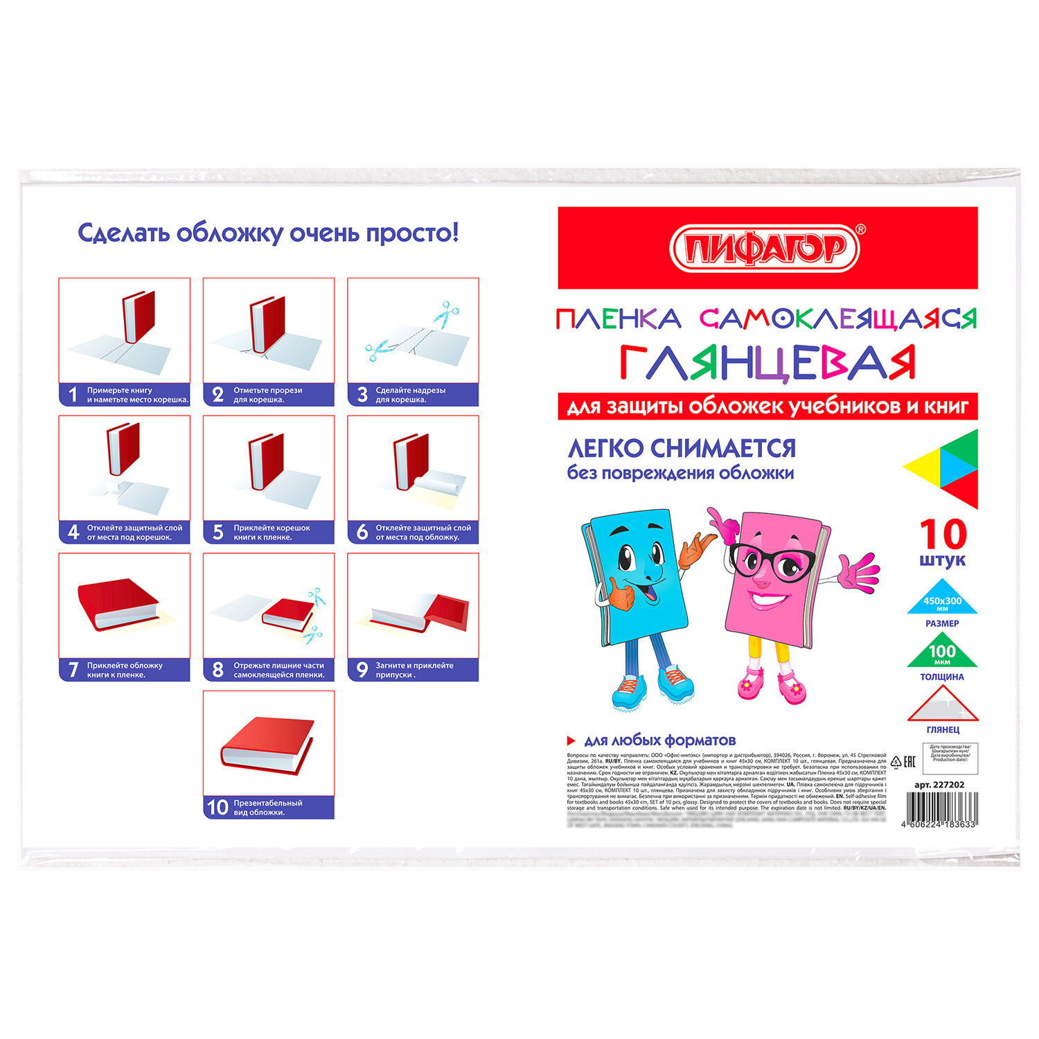 Пленка самоклеящаяся для учебников и книг, 45х30 см, комплект 10 шт., глянцевая, ПИФАГОР, 227202
