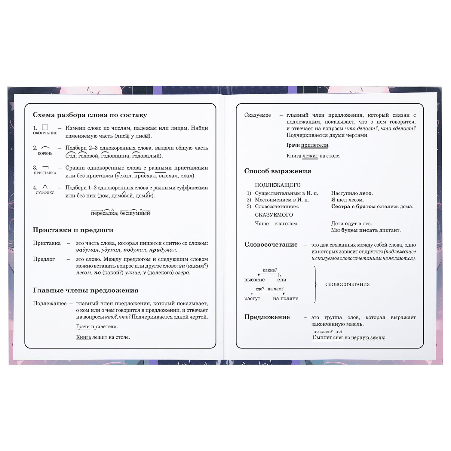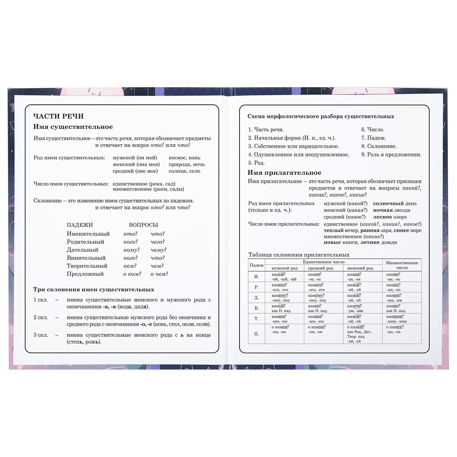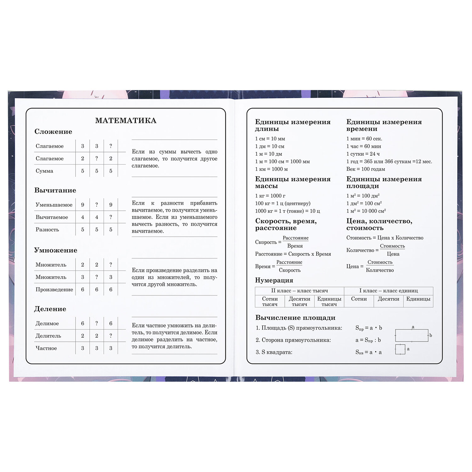 Предназначен для учащихся начальных классов. Твердая обложка надежно защищает бумагу и долго сохраняет привлекательный внешний вид. Изображения с помощью спецэффекта "глянцевая ламинация" становятся более яркими и насыщенными, исключается возможное истирание рисунка. Внутренний блок содержит 48 листов и состоит из офсетной белой бумаги плотностью 60 г/м2. В справочном материале собраны основные подсказки для учащихся.