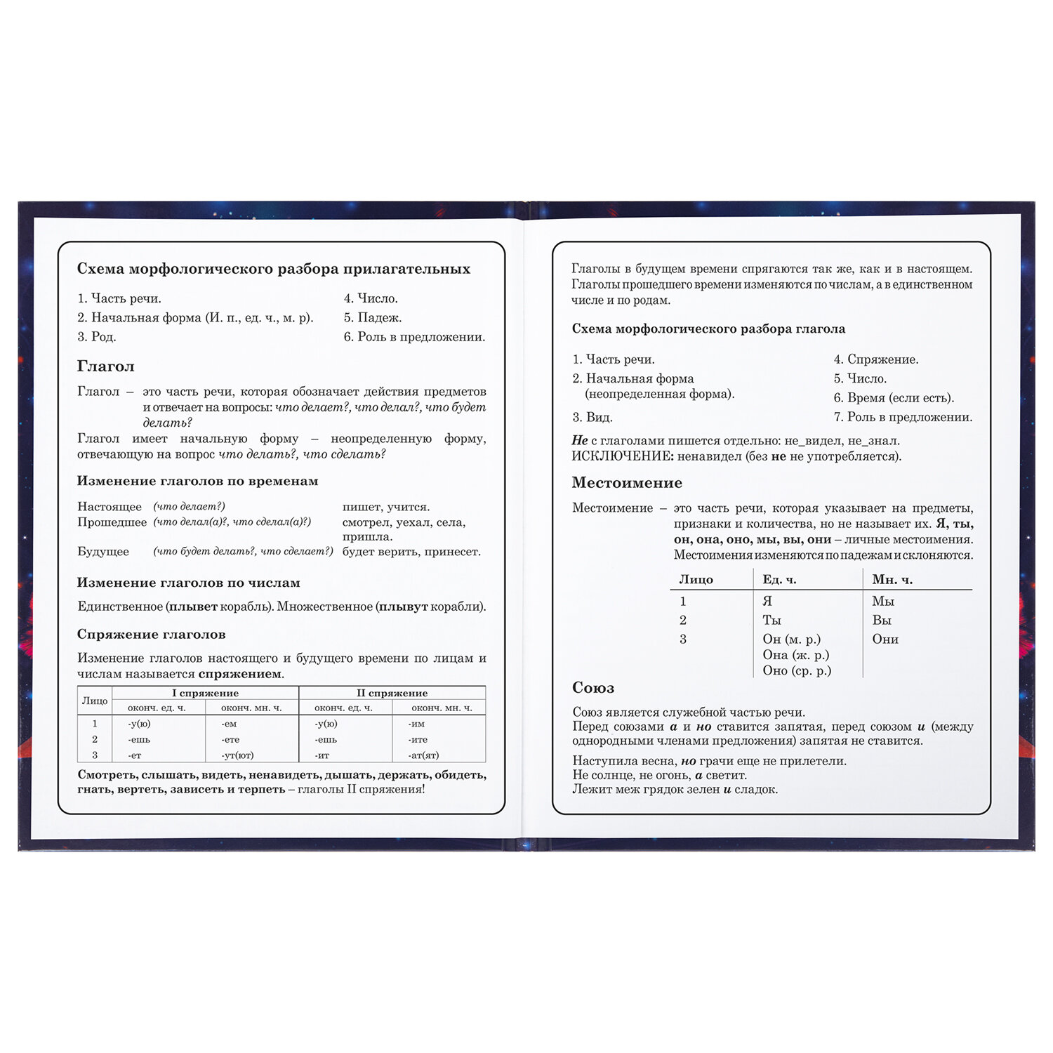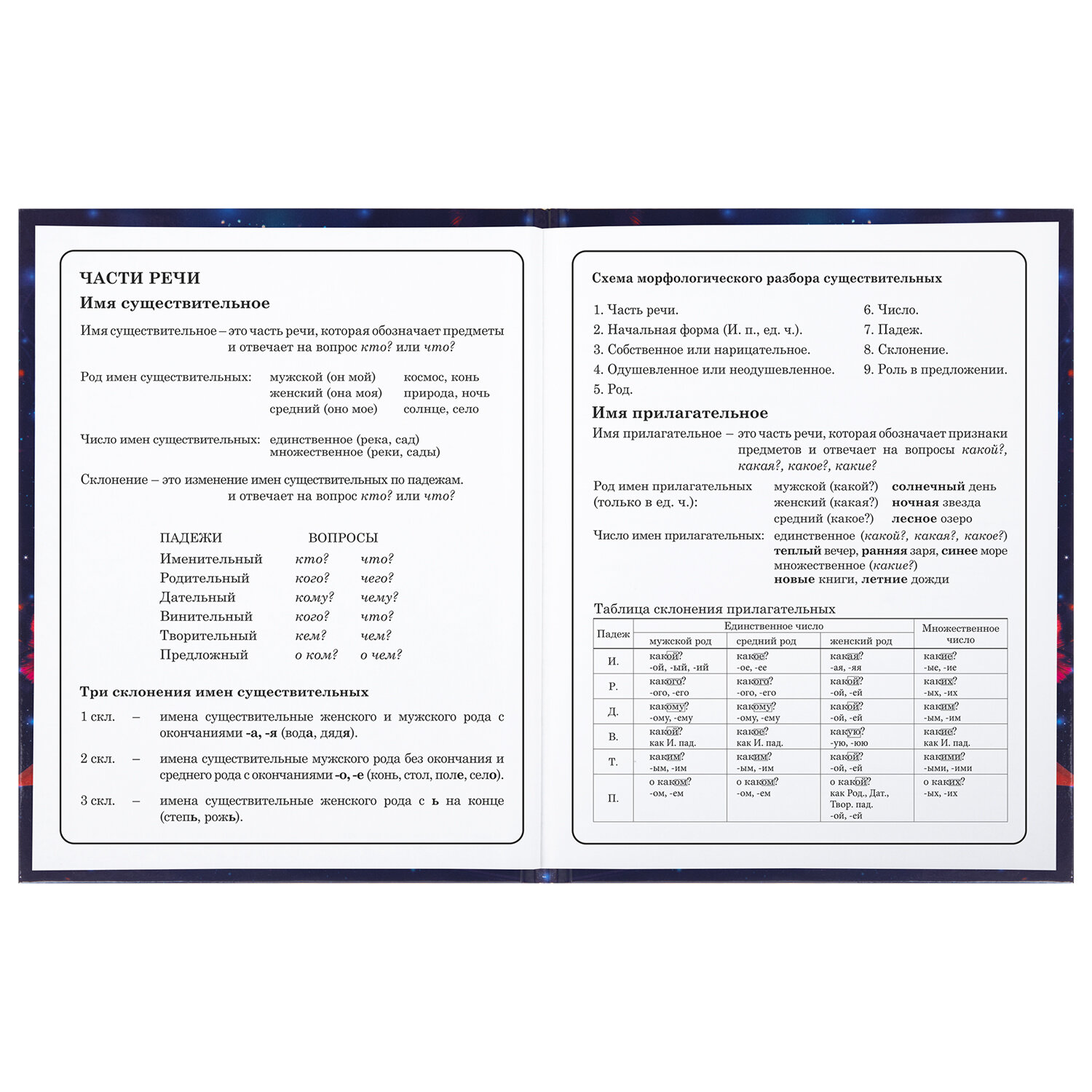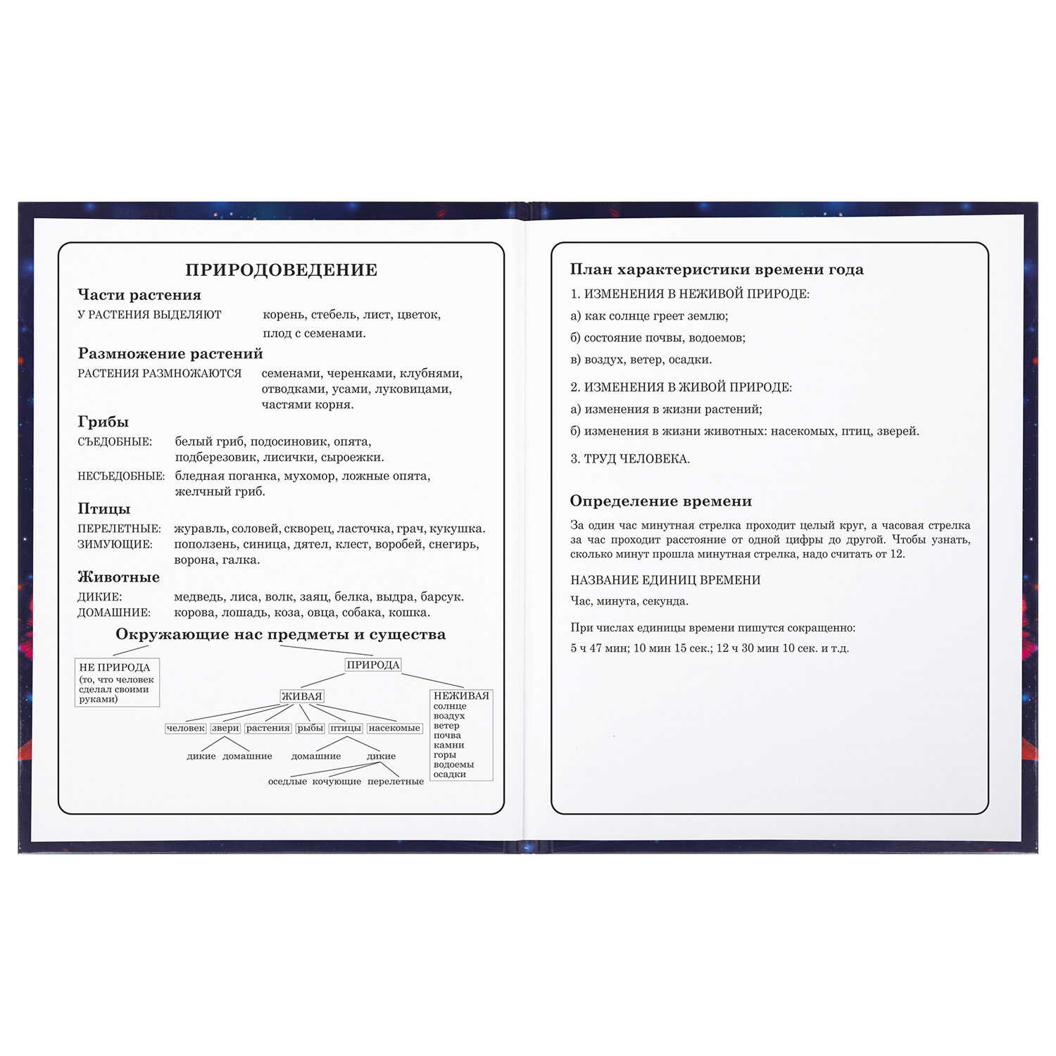 Предназначен для учащихся начальных классов. Твердая обложка надежно защищает бумагу и долго сохраняет привлекательный внешний вид. Благодаря глянцевой ламинации краски на изображении становятся более яркими и насыщенными, исключается возможное истирание рисунка. Внутренний блок содержит 48 листов и состоит из офсетной белой бумаги плотностью 60 г/м2. В справочном материале собраны основные подсказки для учащихся.