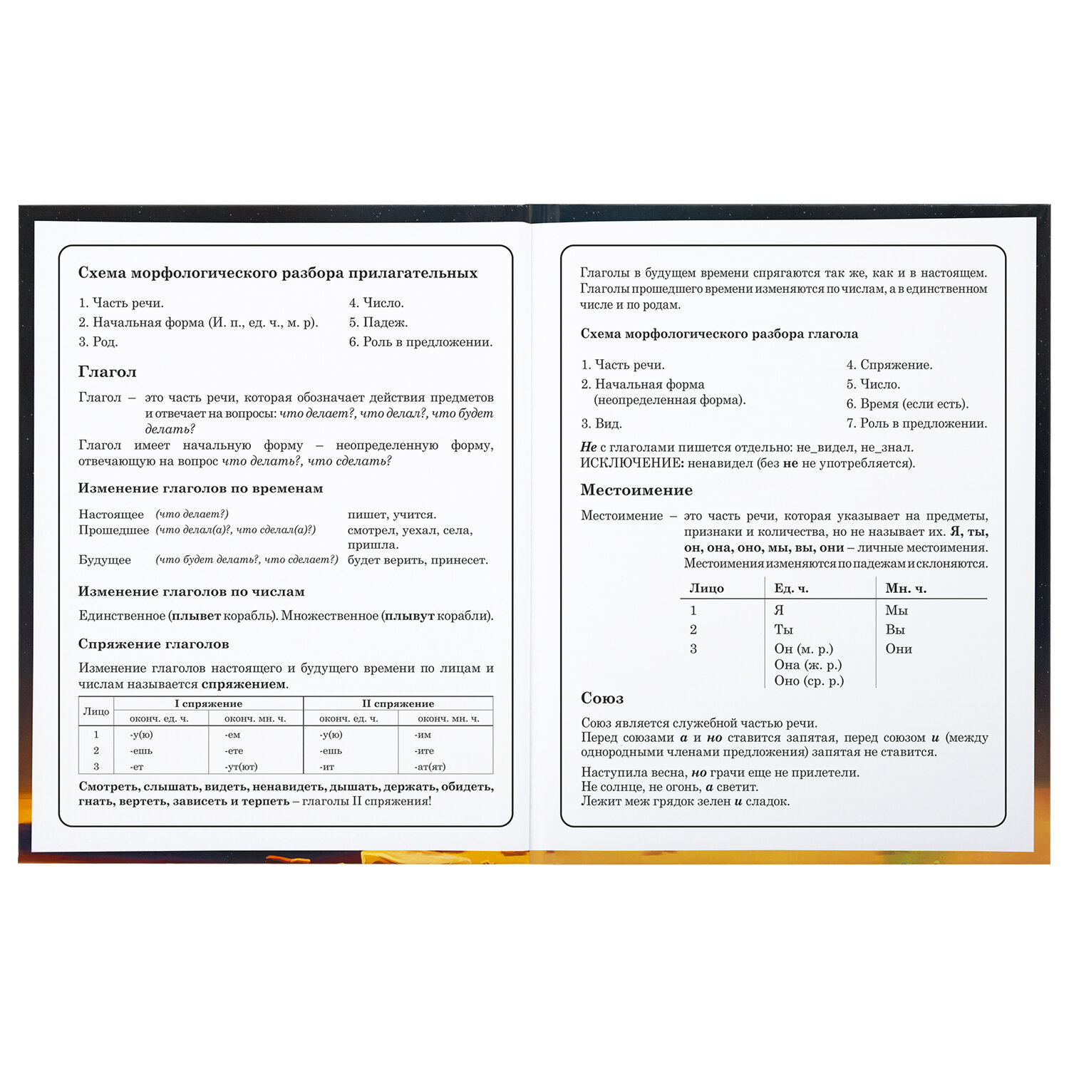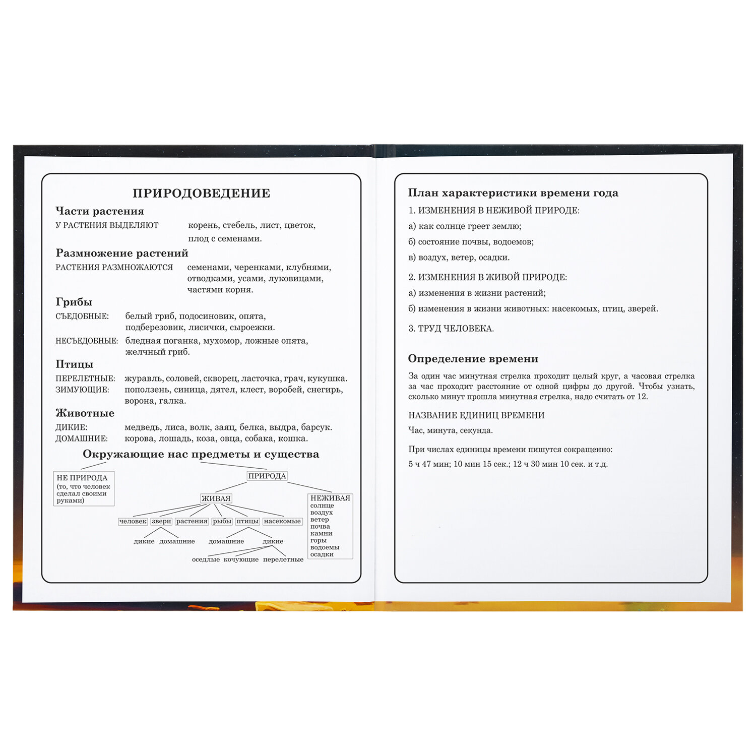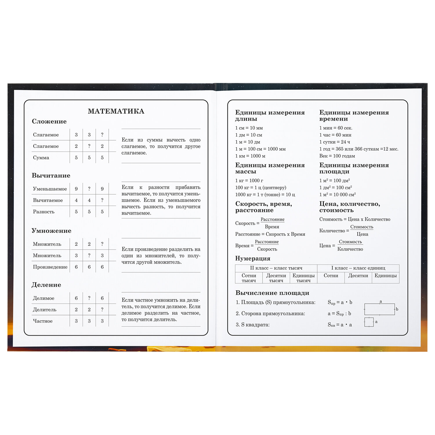 Предназначен для учащихся начальных классов. Твердая обложка надежно защищает бумагу и долго сохраняет привлекательный внешний вид. Благодаря глянцевой ламинации краски на изображении становятся более яркими и насыщенными, исключается возможное истирание рисунка. Внутренний блок содержит 48 листов и состоит из офсетной белой бумаги плотностью 60 г/м2. В справочном материале собраны основные подсказки для учащихся.