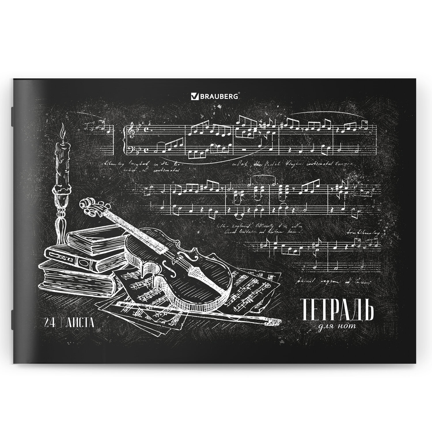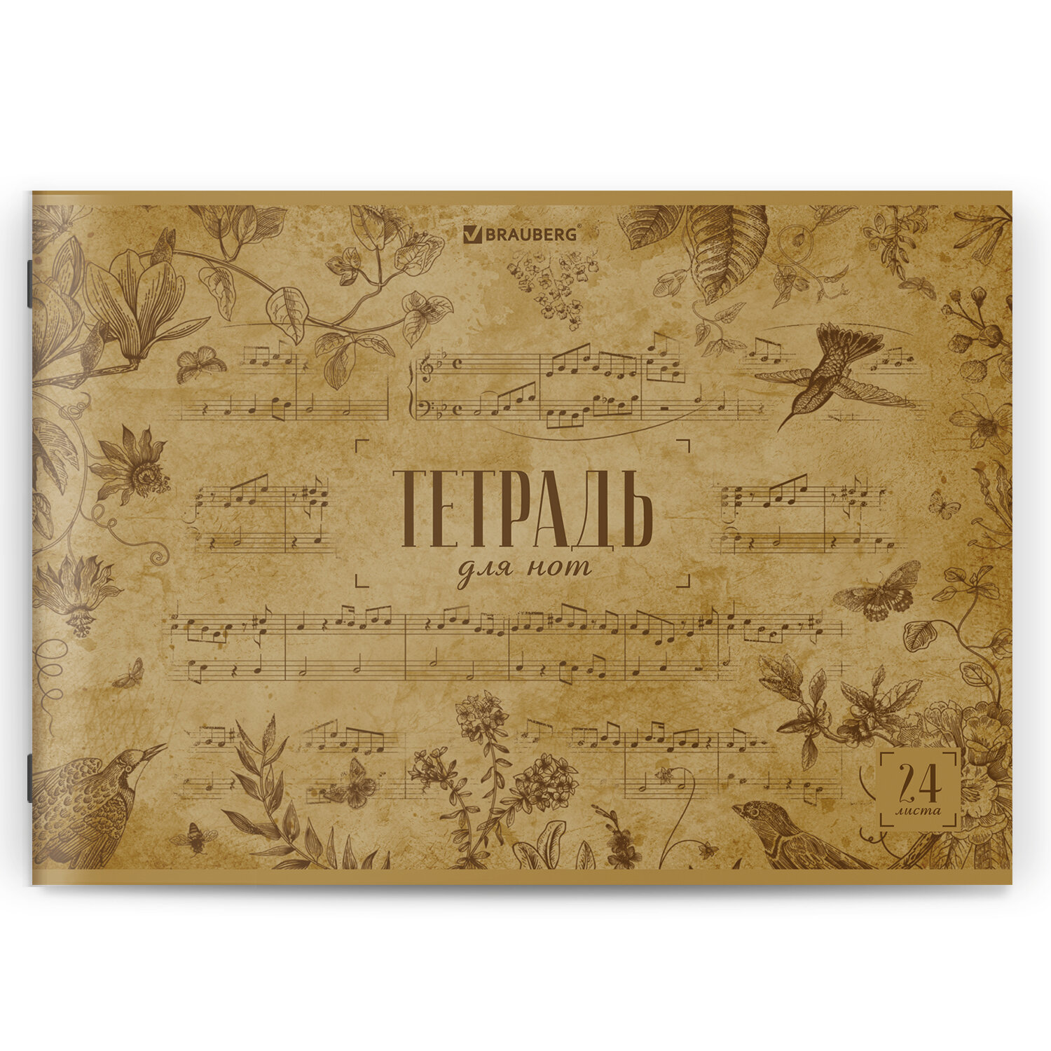 Тетрадь для нот А4, 24 л., обложка мелованный картон, горизонтальная, на скобе, BRAUBERG, "Классика"